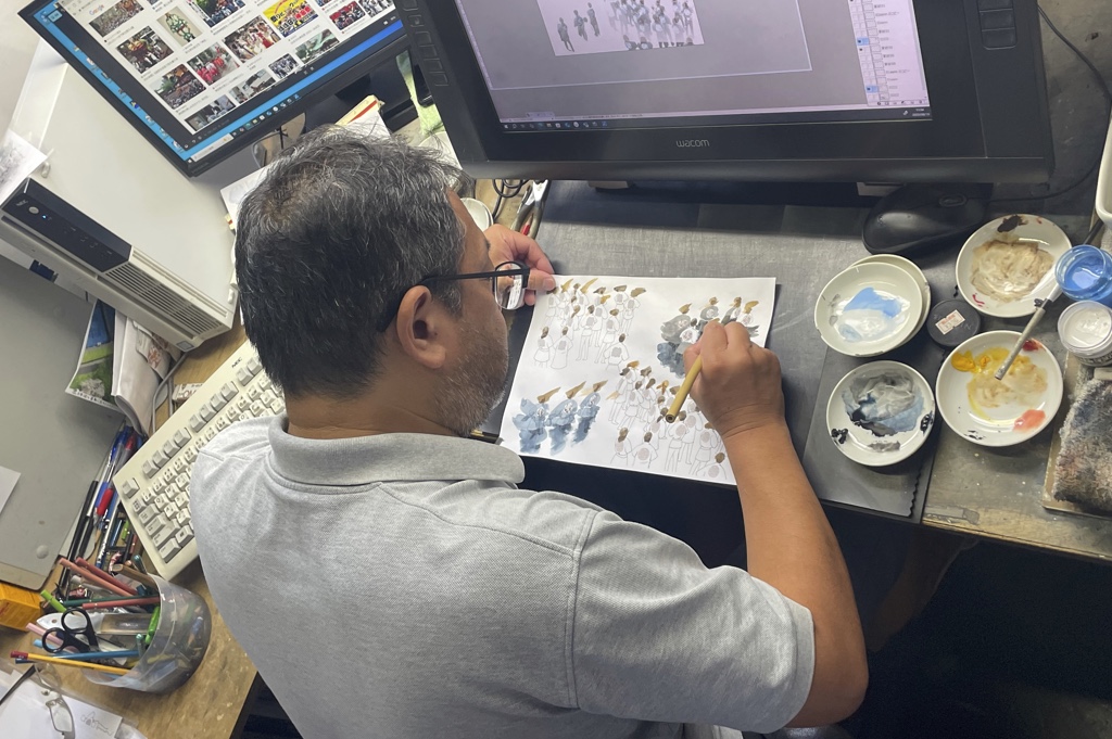 線画下図の修正指示に対応し着色及び仕上げ作業に入ります。