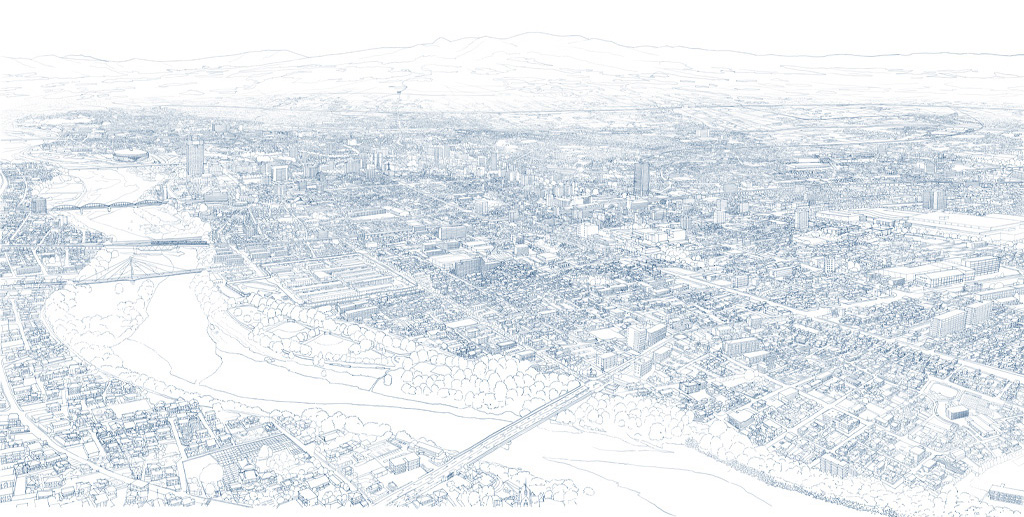 その愛すべき地を象徴する赤城山や利根川に抱かれた広域景観を絵地図として表現してみました。